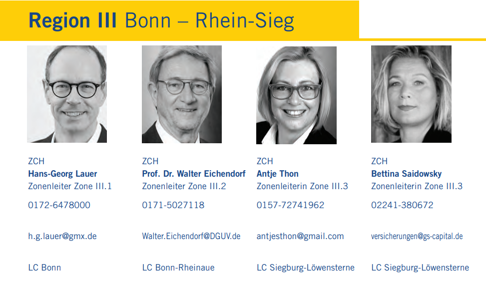 Region III-1: LC Bonn, LC Bonn-Godesberg, LC Bonn Rhenobacum, LC Bonn-Venusberg, LC Meckenheim-Wachtberg