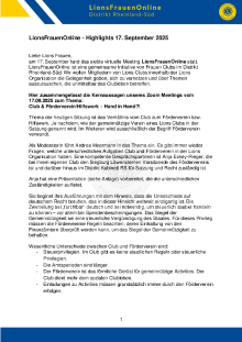 Wir werden über spannende Themen wie das für 2026 geplante Jugendcamp/Bonn Tag, den Move for the Planet 2026 und den anstehenden LLSD am 9. Mai 2026 diskutieren. Liebe Lionsfreunde, das neue Lionsjahr ist bereits mit einigen Activities und zahlreichen Clubabenden gestartet. Ich ...