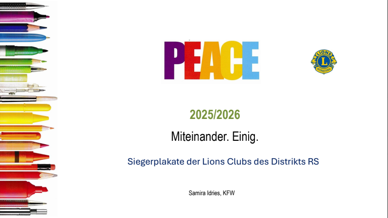 es steht eine wichtige Wahl an. Aus den Siegerplakaten der LC Brühl (2), Würselen (1), Baesweiler/ Herzogenrath (1), Lohmar (3), Köln-Laetitia(4)und Bergische Löwinnen (1), muss das Siegerplakat des Distrikts Rheinland-Süd ermittelt werden.